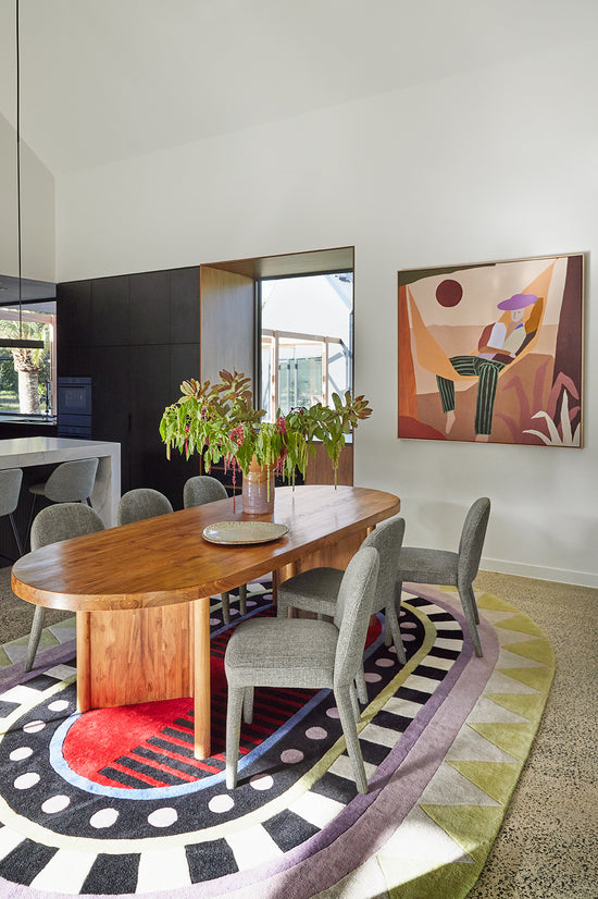 • Wallington living room designed by Nikki McGar Interiors featuring large-scale statement artwork, bold colour, and soft neutral furnishings for balance.